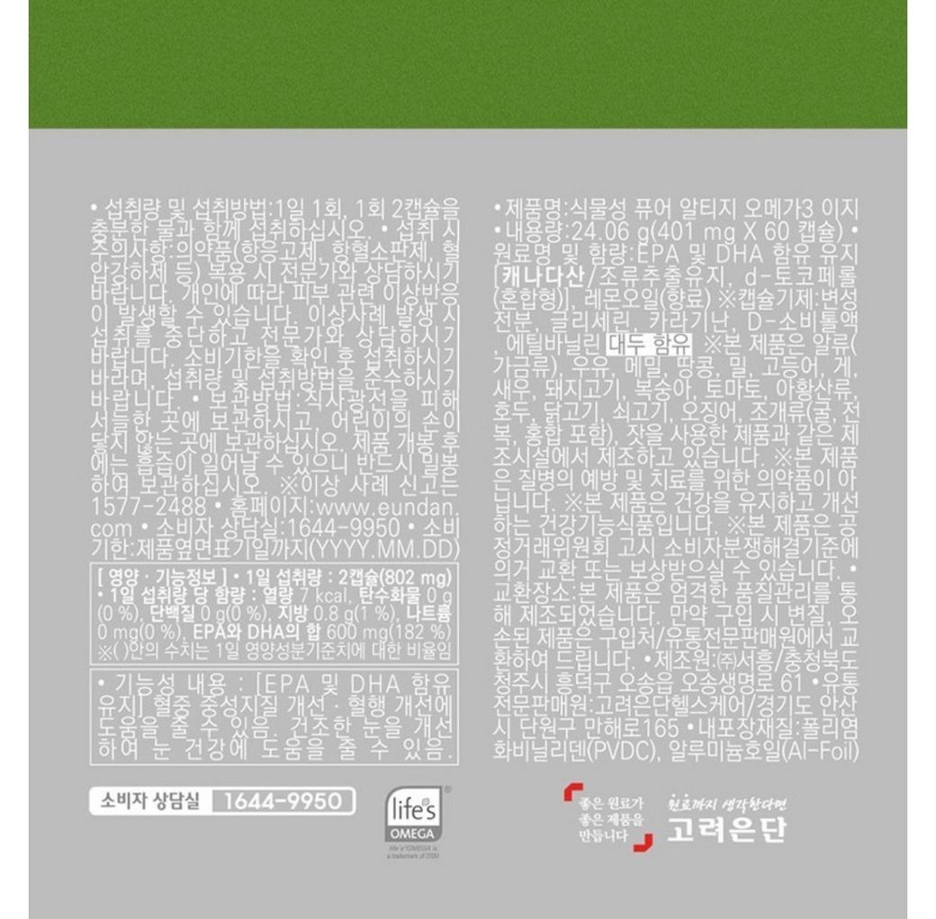 식물성 퓨어 알티지 오메가3 이지(고려은단) 먹고 있습니다.