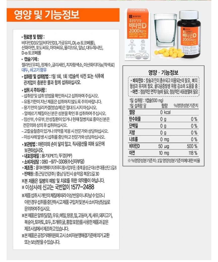 그런데 제가 이석증 때문에 비타민D를 추가로 섭취하려고 하는데 종근당 건강 비타민D 2000IU를 섭취하면 아연이 같이 함유된 영양제라 아연이 3번이나 중복이 돼서 프로폴리스1000(아연 8.5mg 함유)를 제외하고 먹으려고 하는데 괜찮을지 조언을 구하고 싶어요.