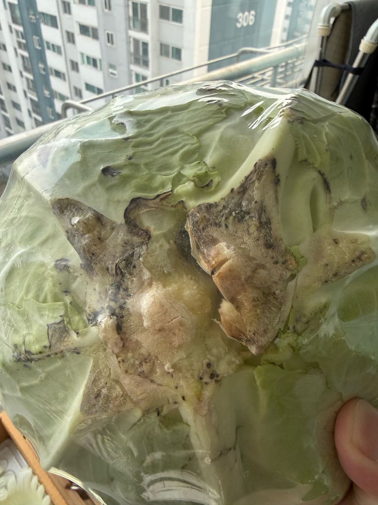 마트에서 산지 2주밖에 안됐는데 밑에는 갈라지고 중간중간 썩어버린듯이 변해버렸어요:…
