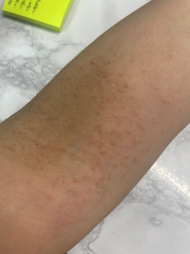 사진만 봐서는 아토피 증상으로 생각됩니다. 보습제를 평소에 자주 바르시고, 증상이 심할 때는(지금 사진 정도 되는 상태라면) 스테로이드 연고를 발라 주시는 것이 필요할 것 같습니다. 정확한 판단을 위해 피부과에서 다시 한번 확인해 보시구요.