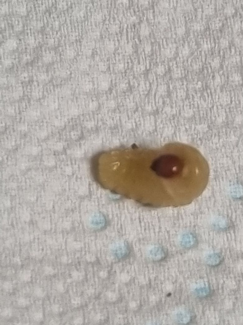 풍뎅이나 꽃무지의 애벌레로 추측되는것 같습니다만 애벌레라 정확히 알기가 어렵습니다 작은 하늘소의 애벌레 일 수 도 있구요