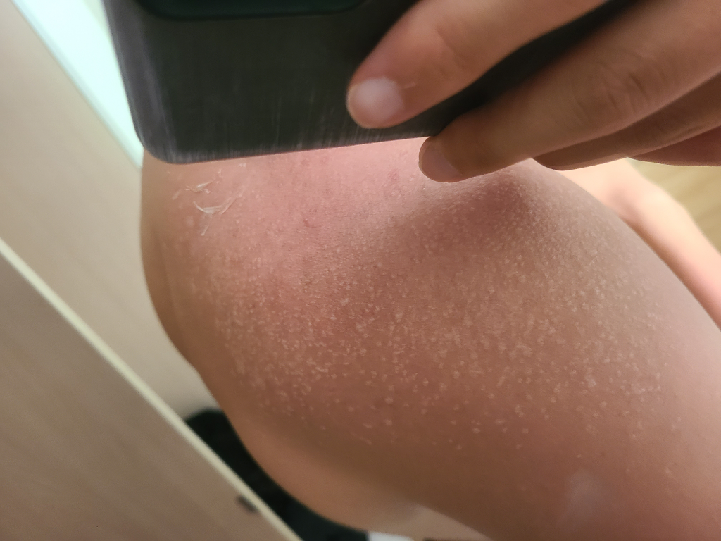 일광화상 후 호전과정에서 겉의 표피가 탈락되는 현상으로 보여집니다.