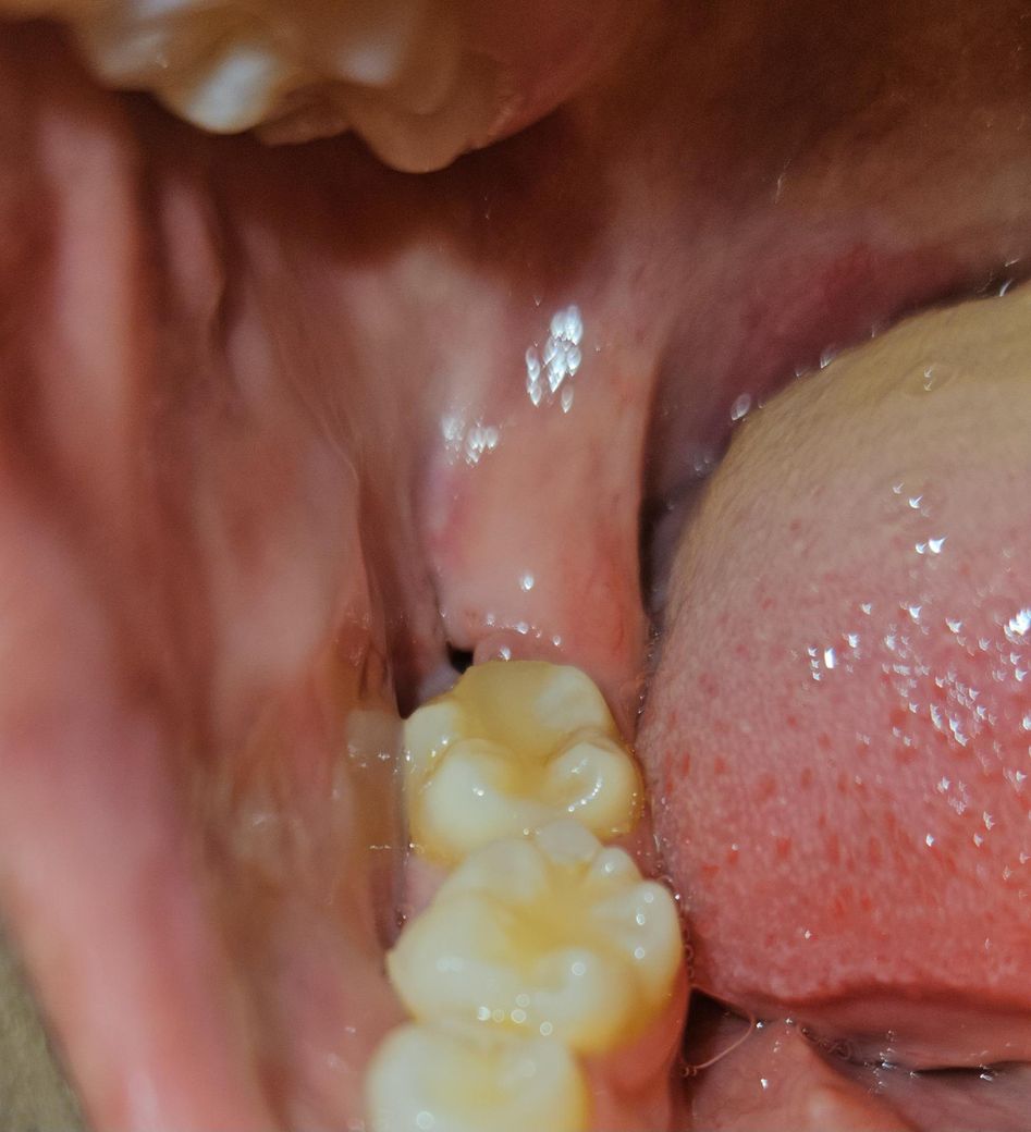 사진으로 봤을 경우에는 사랑니를 발치한 부위 내부에 구멍이 있는 것으로 보입니다.