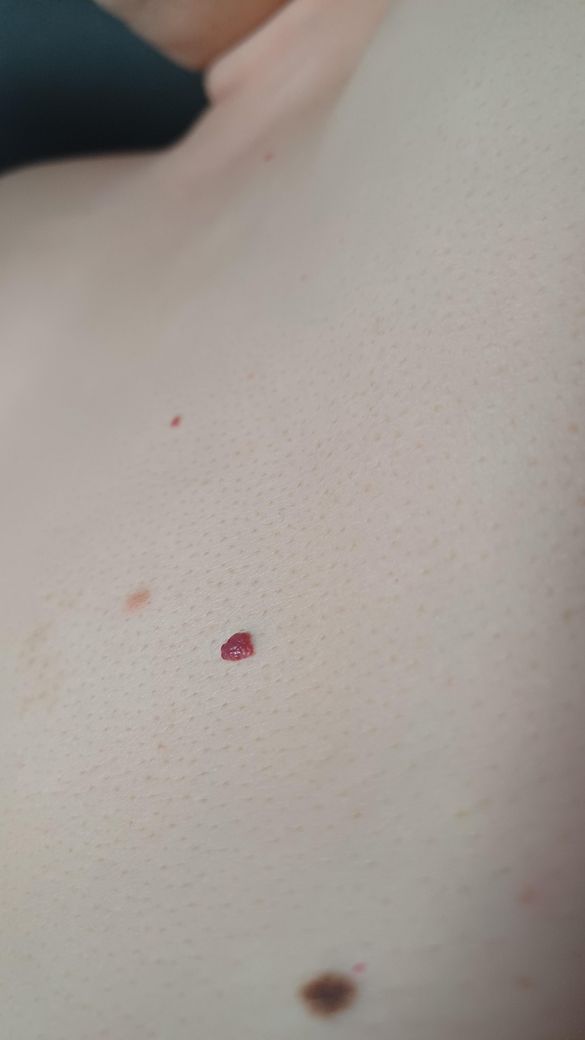 신랑이 예전부터 사진처럼 몸에 빨간 점(검붉은 산딸기 모양)이 있었다고 합니다. 몇년전에 하나가 더 생겼고 최근에 목부분에 작게 하나 더 생겼는데요. 문제없을까요?