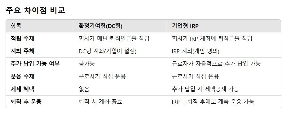DC형 퇴직연금과 기업IRP 차이에 대해 문의드립니다.