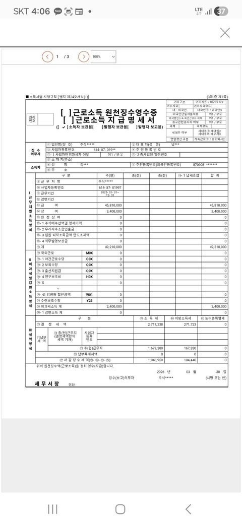 이번에 급여받으면서 연말정산 서류는 작성하지 않았는데