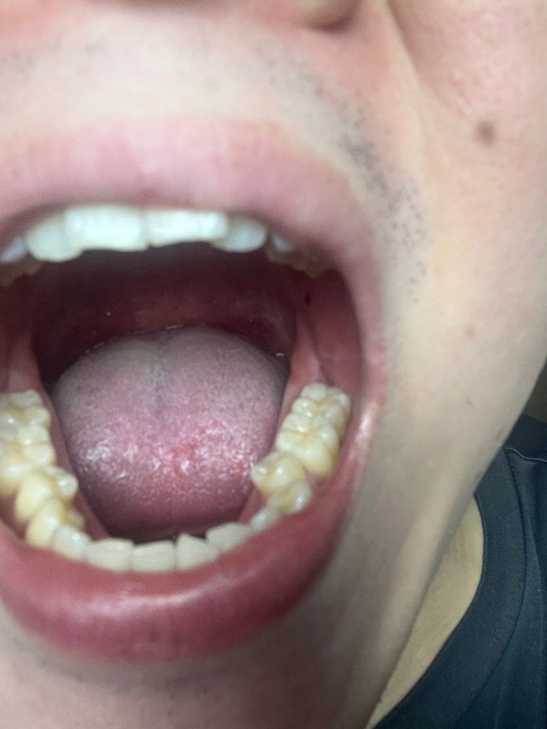 오른쪽 아래 틀어진 치아에서 불편감 + 경미한 통증 발생