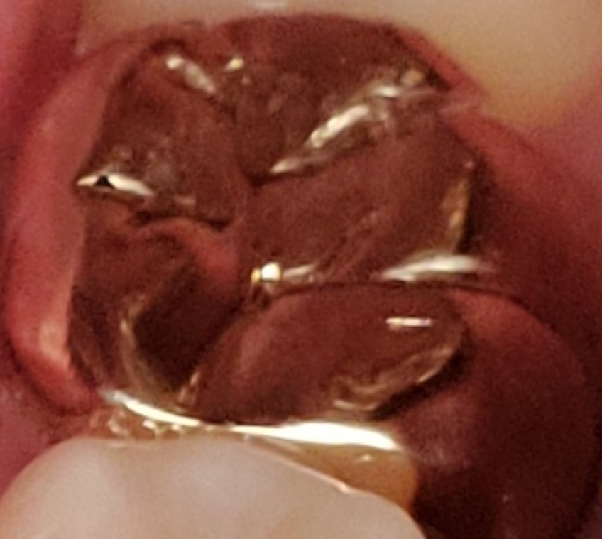 교합지일 가능성이 있을것같고 교합지가 아니면 구멍이 생겻을 가능성이 잇습니다. 치과에 가셔서 확인을 한번 해보시는게 좋을것같습니다.