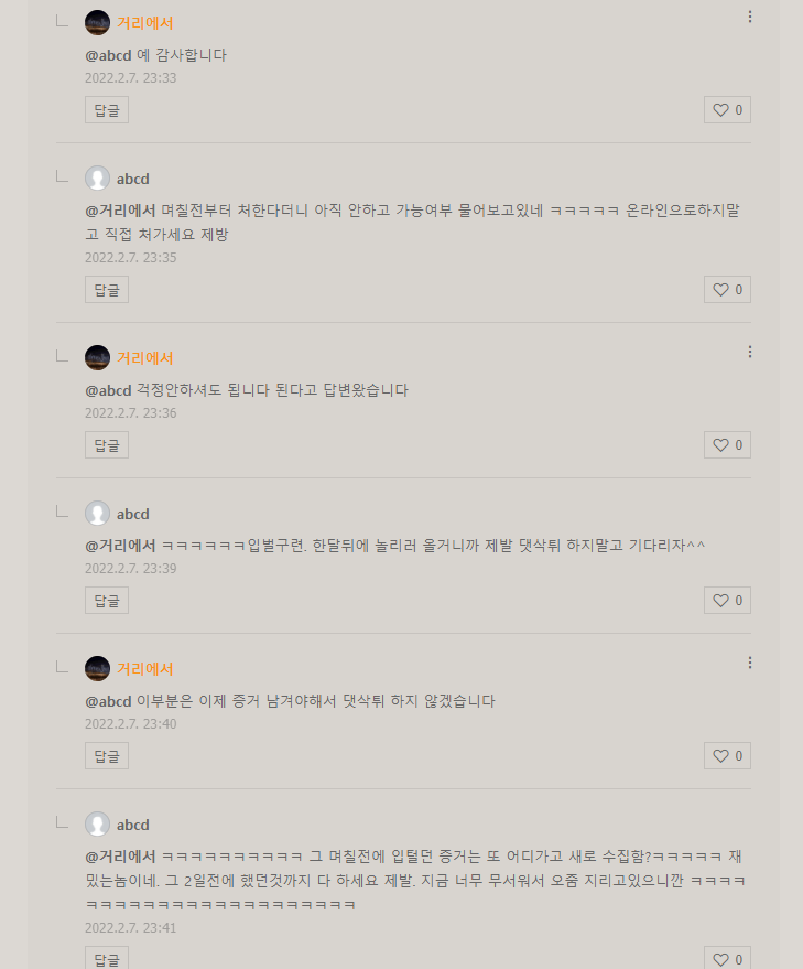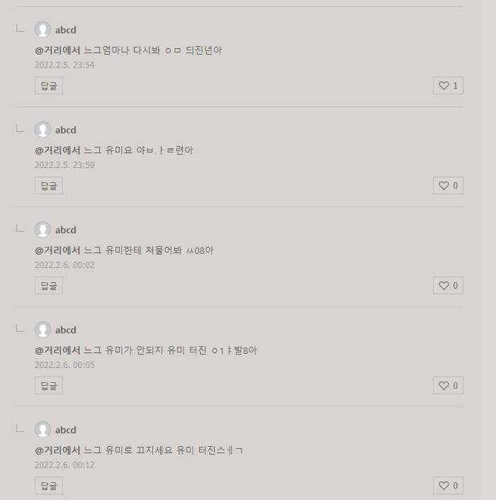 다른 3자와 이야기하고 있던 도중 아무 이유 없이 갑작스레 상대방이 댓글로 욕설을 해왔습니다.