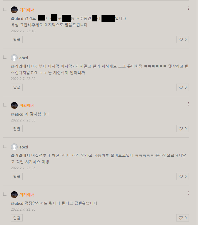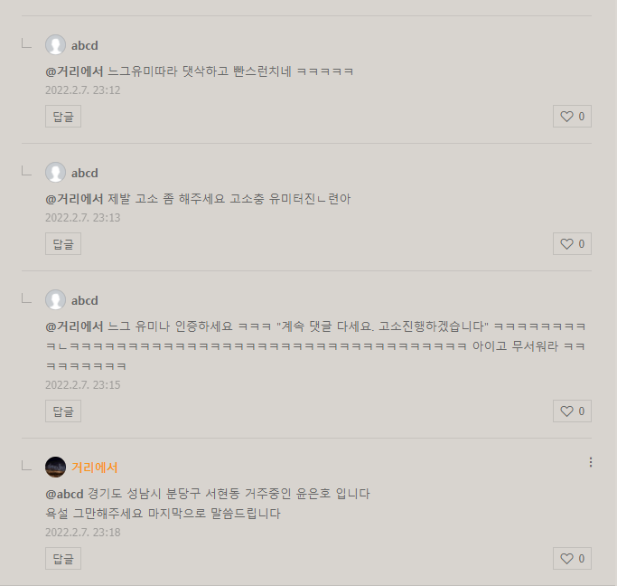 이후 저는 제 본명과 사는 장소 나이까지 언급을 했고 그만해달라는 댓글을 달았습니다