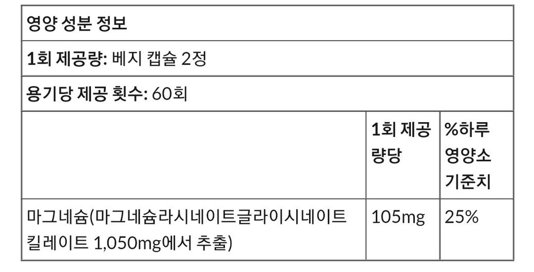 마그네슘의 경우 일반적으로 하루에 마그네슘 기준 400mg 정도 복용하는 것이 일반적입니다.
