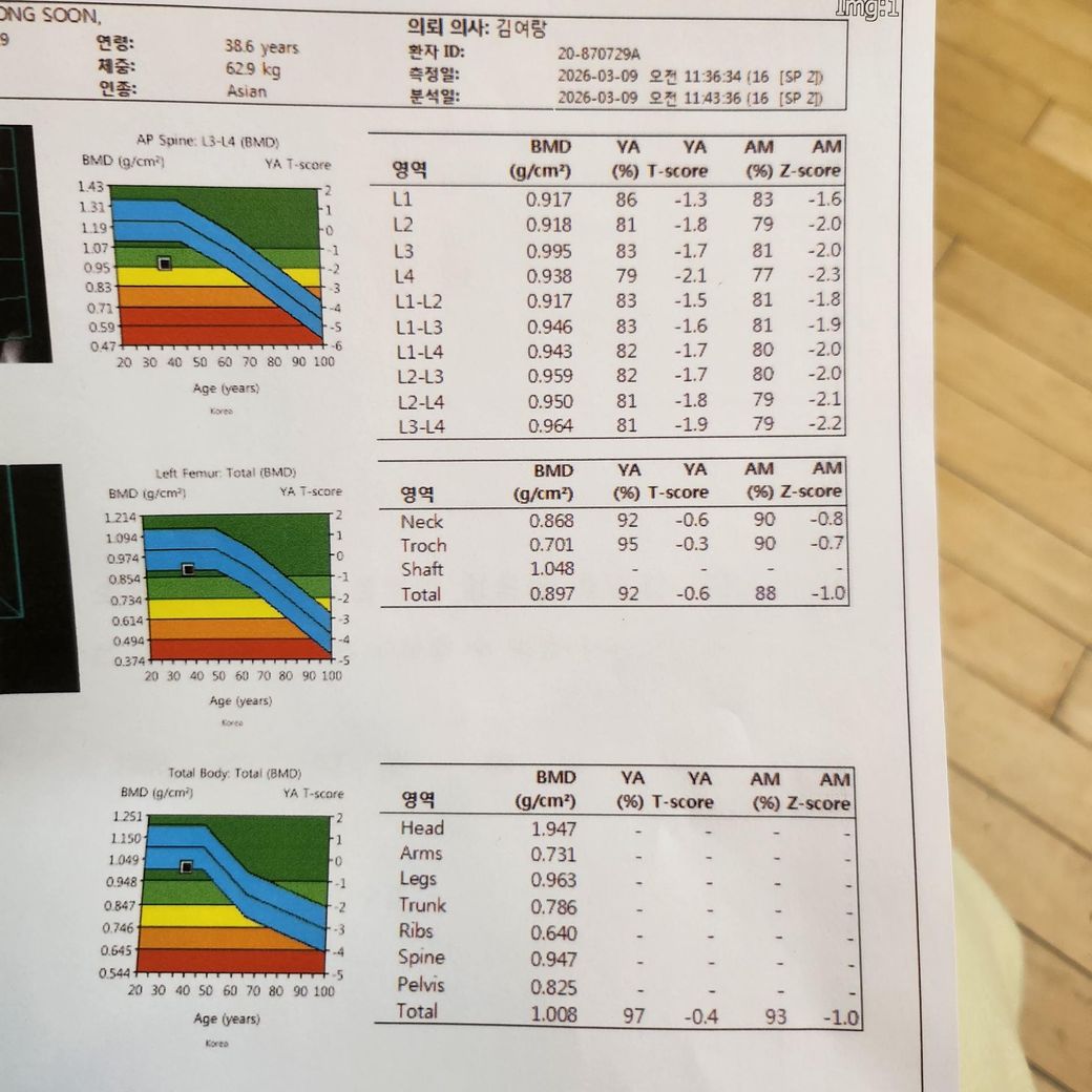 다른곳은정상인데 척추쪽이 -1.6에서 -2.3까지도 있더라구요 산부인과선생님은 영양제 챙겨먹으라고만하고 별말없어서 별거아닌건줄알았는데 약처방도 없었구요