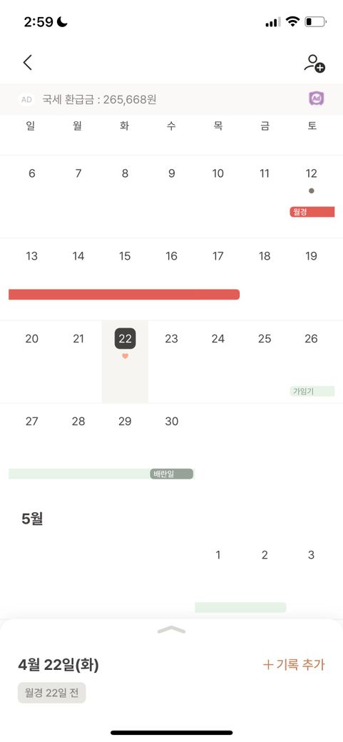 생리는 4/12~4/17까지 했고 그뒤로 약 2일정도 갈생냉이 나왔습니다
