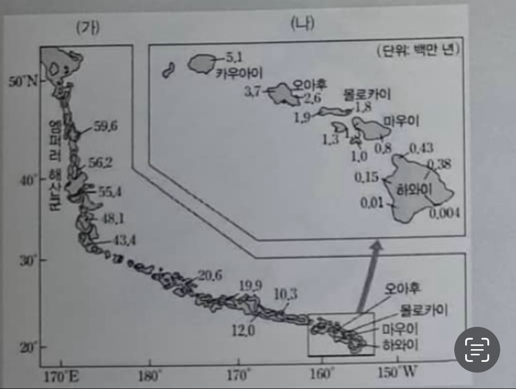 3. 하와이 열도가 만들어질 때, 판의 이동 방향: