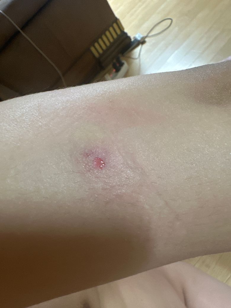 현재는 물집이 잡혔는데 씻다가 터졌습니다