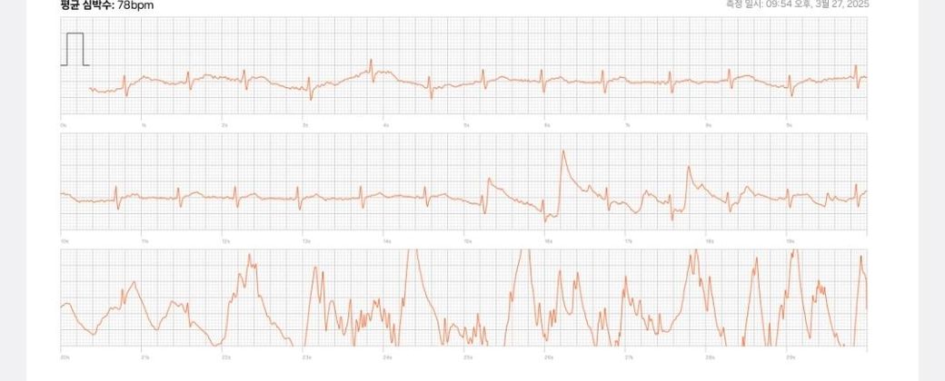 스마트워치의 심전도 소견을 통해서 이렇다 할 유의미한 의학적인 판단을 내려서는 안 됩니다. 그만큼 신뢰도가 당장 높지는 않습니다. 각설하고 QRS파가 규칙적으로 나오는 것으로 보아 심방세동이 아닙니다. 제일 아래쪽 그래프를 보면 잡음 때문에 제대로 그래프가 그려져 있지 않은데 그 쪽 부위를 기계가 심방세동이라고 판단한 것 같습니다. 괜찮습니다.