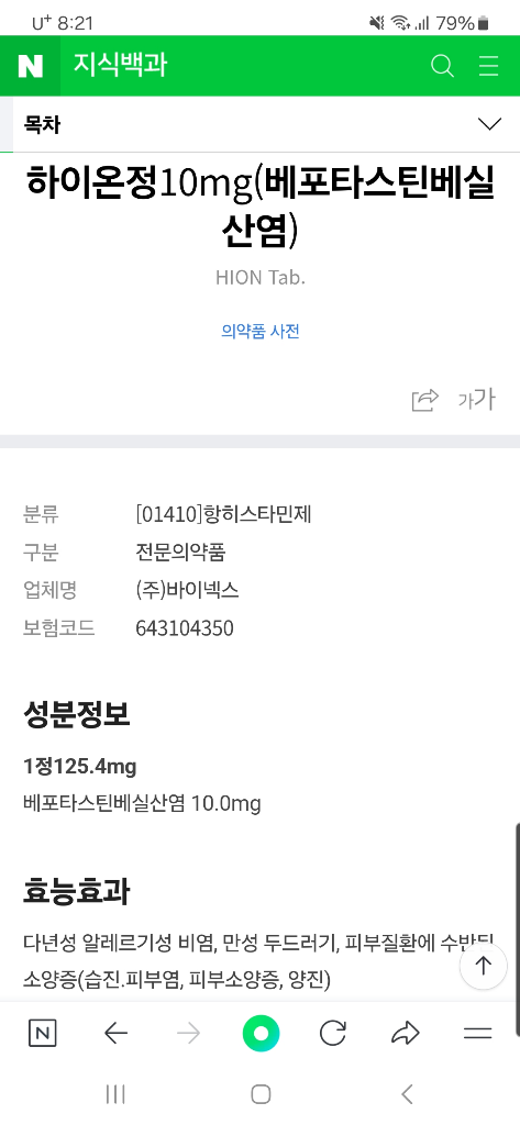 하이온정10mg도 지르텍정과 같은 계열의 약입니다.