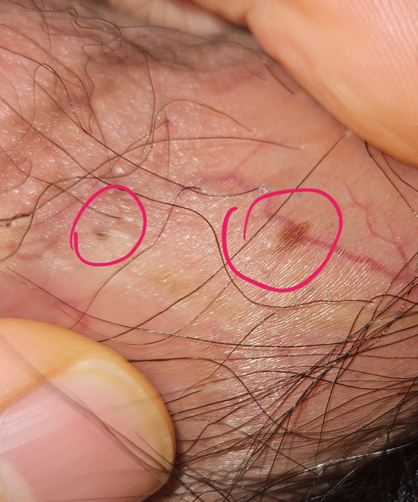 성병보다는 단순한 모반일 가능성이 더 높아 보입니다. 크기나 모양의 변화가 있으면서 동반증상이 있다면 진료를 받아보시기 바랍니다.