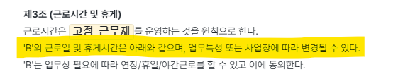 안녕하세요. 근로계약서 작성시 근무시간 관련해서 사진과 같이 문구를 넣으면 문제 없을까요?