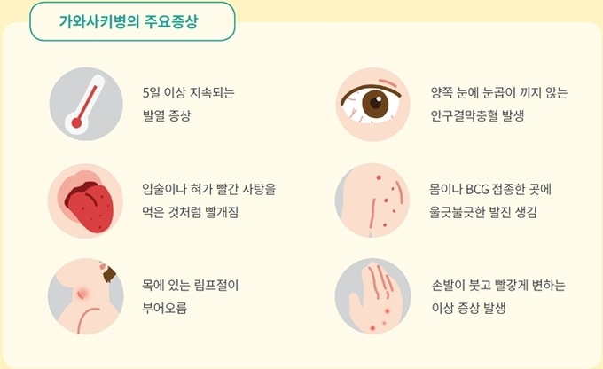가와사키병은 면역 반응 이상, 감염, 유전적 요인 등이 복합적으로 작용해 발생합니다. 주로 5세 이하 어린이에게 발생하며, 고열, 발진, 결막충혈, 입술 및 혀의 변화(딸기혀), 손발 부종 등의 증상이 나타납니다. 이 병은 심장 혈관(특히 관상동맥)에 염증을 일으킬 수 있어 치료하지 않으면 관상동맥류가 생길 위험이 있습니다. 다행히 면역글로불린(IVIG)과 아스피린 치료를 적절히 받으면 대부분 회복되지만, 일부 아이들은 장기적인 심장 문제를 겪기도 합니다. 만일 이 질환이 의심된다면 소아과 진료 및 치료 받으시길 바랍니다. 감사합니다