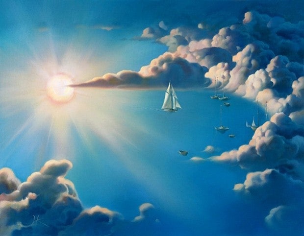 파란 하늘이 바다로 보이는 현상은 "유사성"에 해당합니다. 유사성은 비슷한 색깔, 형태, 크기 등의 요소들이 서로 묶여서 하나의 그룹으로 인식되는 원리입니다. 게슈탈트 이론에서 유사성은 우리가 비슷한 시각적 특성을 가진 것들을 하나의 집합으로 묶어 인식하려는 경향을 설명합니다. 파란 하늘과 바다가 함께 나타나는 이미지를 보면, 두 요소가 비슷한 색을 공유하고 있기 때문에, 우리는 하늘과 바다가 연속적으로 연결되어 있다고 인식할 수 있습니다. 즉, 파란색이라는 색상과 유사한 질감이 바다와 하늘을 연결시키기 때문에, 하늘이 바다로 이어지는 효과를 느끼게 됩니다. 따라서 파란 하늘이 바다로 보이는 효과는 유사성에 해당합니다. 색깔과 질감의 유사성 덕분에 하늘과 바다가 연속적으로 이어져 있는 것처럼 보이게 되는 것입니다. 한번 그림을 느껴보세요. 저 구름이 섬같이 느껴지고 저 하늘이 마치 바다처럼 느껴지지않나요? 저런 유사성을 강조하고싶어 저런 그림을 그리게 된 것이죠