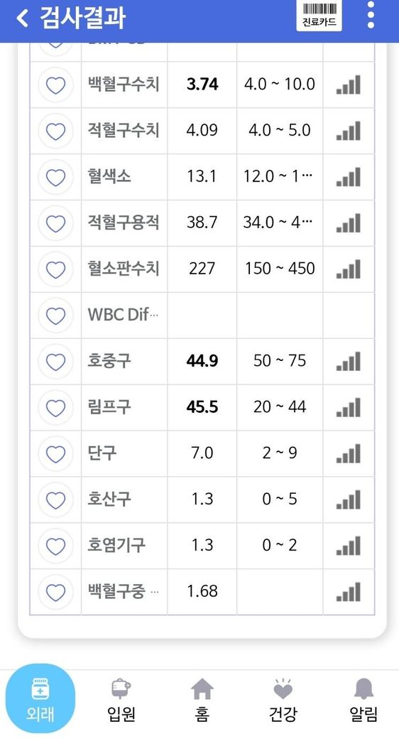 호중구 림프구 역전현상 있는데 심각한건가요?(사진있습니다)