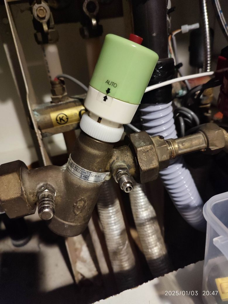 왼쪽으로 돌리면 풀리고 우측으로 돌리면 잠기는 것은 모든 밸브의 고유한 특성입니다. 오른나사의 법칙이지요. 사진상으로 보았을 때 풀리고 잠기는 것은 유량을 조절하는 부분으로 판단됩니다. 복합밸프 특성상 정유량으로 온도조절을 하므로 유량을 설정하는 부분으로 보입니다.