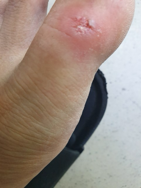 사진만으로는 제한적이나 열감이 느껴진다면 상처부위의 2차 감염의 위험성이 있습니다.