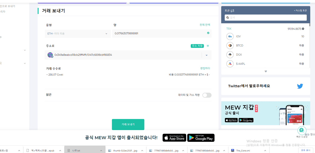 마이이더월렛에 트론이 저장되어있는데 그걸 업비트나 빗썸으로 보내려고
