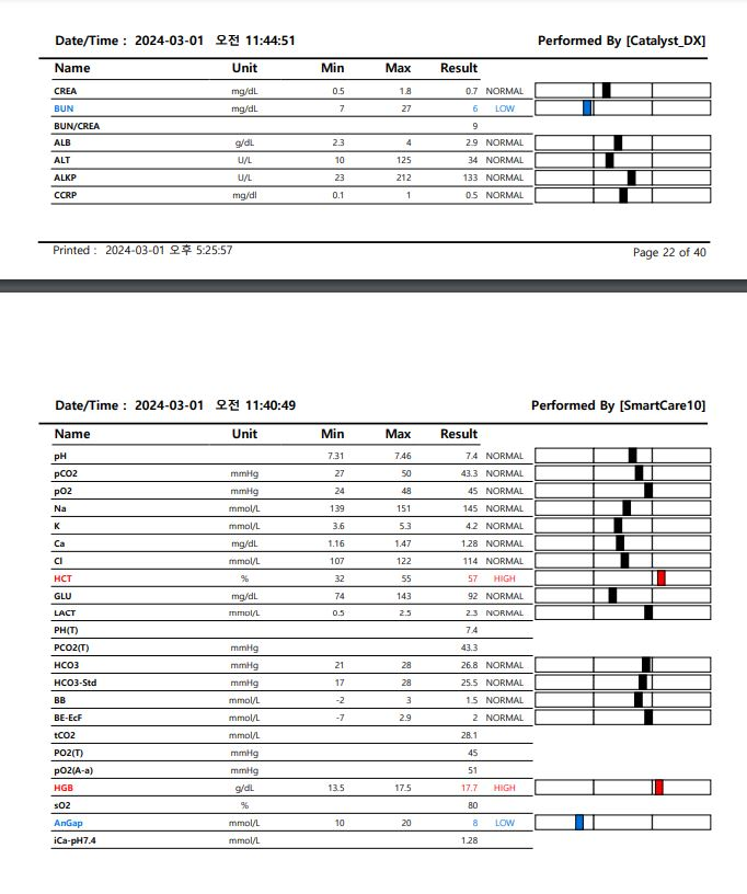 또한 숙련된 수의사가 환자를 직접보고 판단하는 신체 검사 결과가 중요하니 주치의의 소견이 가장 정확합니다.