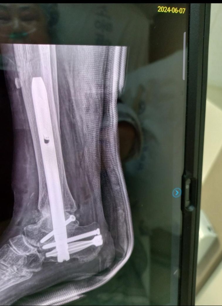 발목이 틀어지셔서 순천향에서 발목 재건술 후 보행이 안되고 통증이 너무 심해 다시 sun병원에서 나사 박는 수술을 했는데 그동안도 계속 붓기는 있었는데 두달이 지난현시점에 봇기가 넘 붓고 발색이 보라색으로 변했어요 최근 염증약과 진통제를 아침 거르고 저녁만 드셨다는데 그영향 때문일까요. 사진 첨부해요
