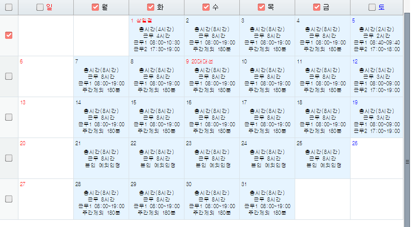 ㅡ3월 9일 휴일근로수당 8시간치 : 다음 달 대체휴일 드림