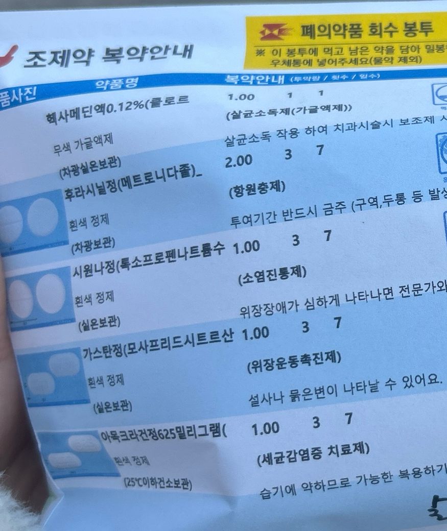 구강외과에서 혀에 염증이 났다며 약을 처방해주셨습니다..