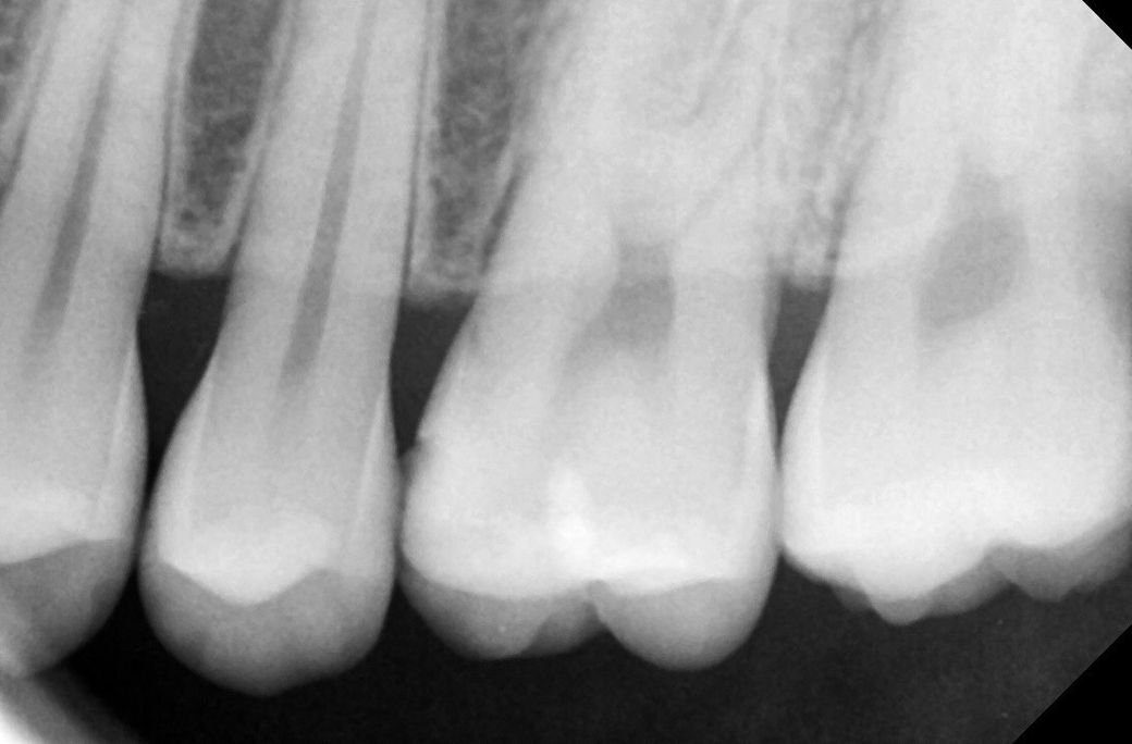 왼쪽 위 4번째와 3번째 사이 인접면 충치