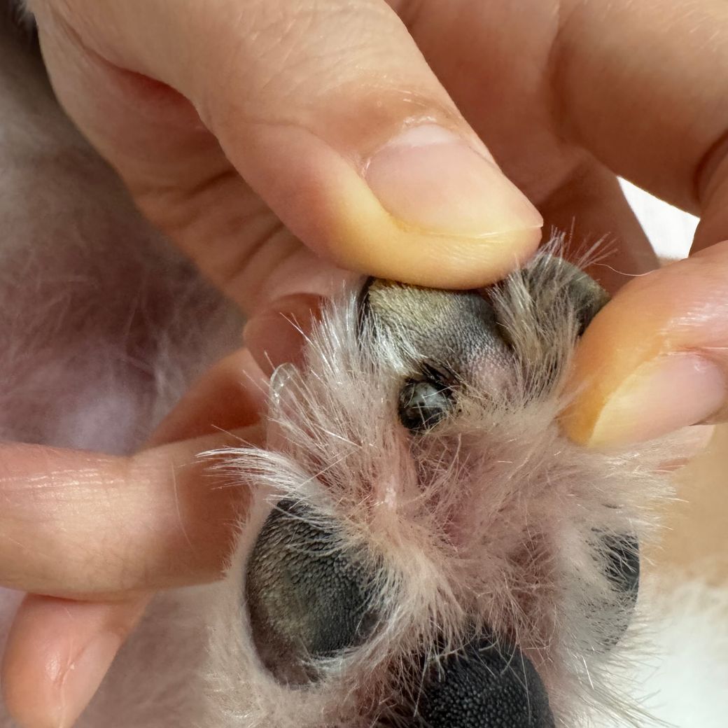 몇일전에 강아지가 발사탕하는데 주위에 딱딱한 검은색 돌같은게 떨어져있길래 뭐지했는데 오늘 샤워시키다가 발바닥 보니까 이런게 있는데 흑색종 인가요,,?몇주전에 발바닥 미용할땐 없던거같은데..
