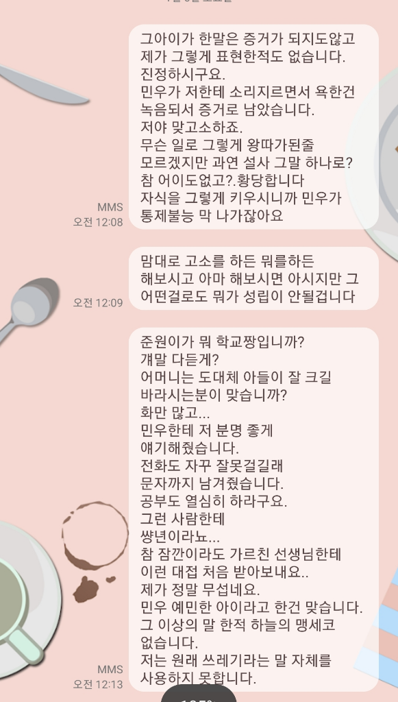 그것때메 자기가 왕따당하고 있다면서 엄마는 막 저한테 전화해서 소리지르고 그 A아들놈은 옆에서 엄청 심한 욕설을 퍼부었는데...저보고 삼자대면을 하자는둥
