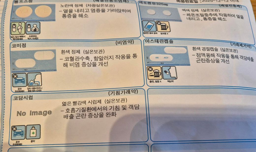 사진에 나온 약 구성은 감기에서 흔히 동반되는
