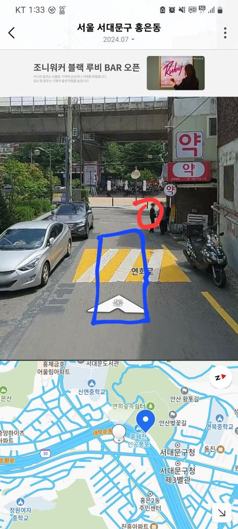 바로 제 허벅지쪽에 차량이 딱 닿으면서