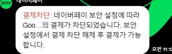 네이버페이 알림이 가끔씩 오는데 해외결제 차단했다고요..