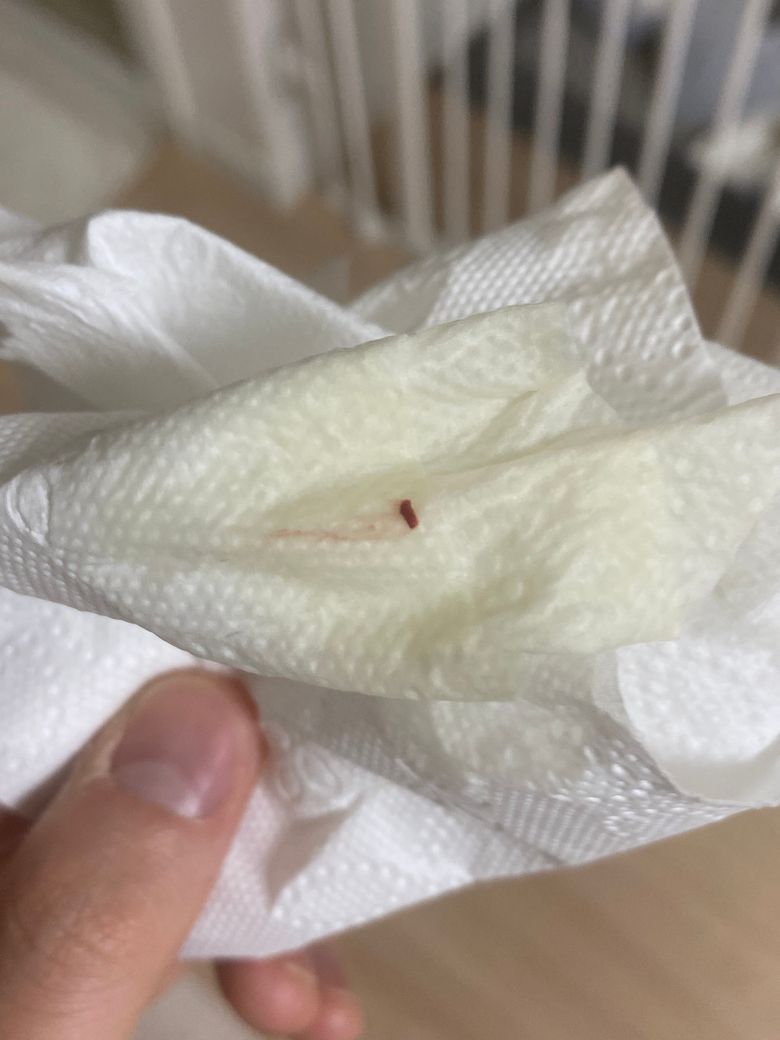 방광염으로 꽤 고생했던 강아지입니다. 오줌색이 진해서 오래 참았다 누어서 그런가보다 했는데, 생식기 휴지로 닦아주니 사진과 같은 피가 묻었습니다. 촉감은 살짝 젤리?같았구요..