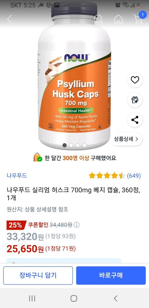 차전자피를 하루에 두번씩 아침 저녁으로 섭취하고 있음니다