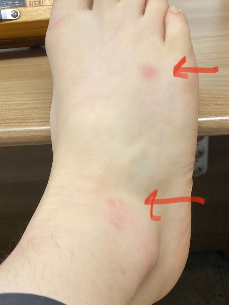 발등 발목 멍 질문입니다.. 크게 아프지는 않아요