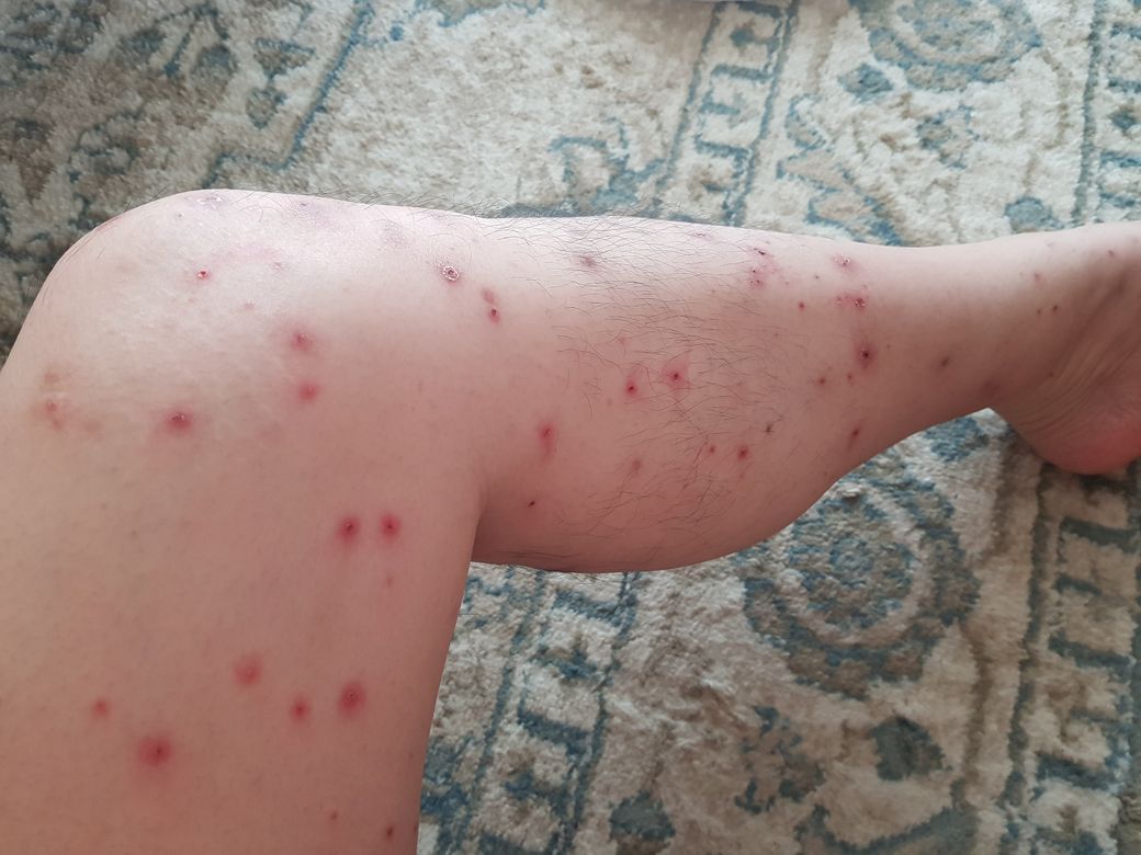 증세는 처음에 아주 작은 반점이나 구진으로 시작하여 때로는 수포가 생기면서 진물도 나온다. 이후 딱지가 생기면서 원형이나 타원형 또는 불규칙한 모양으로 변해가며 온몸에 퍼지고 가려움증이 심하게 나타나는데, 발작적이고 순간적으로 가려움증이 나타나는 경향이 있다. 낮보다는 밤에 더 심해서 잠을 이루지 못하기도 한다. 긁으면 상처가 생겨서 세균에 감염되므로 주의해야 한다.