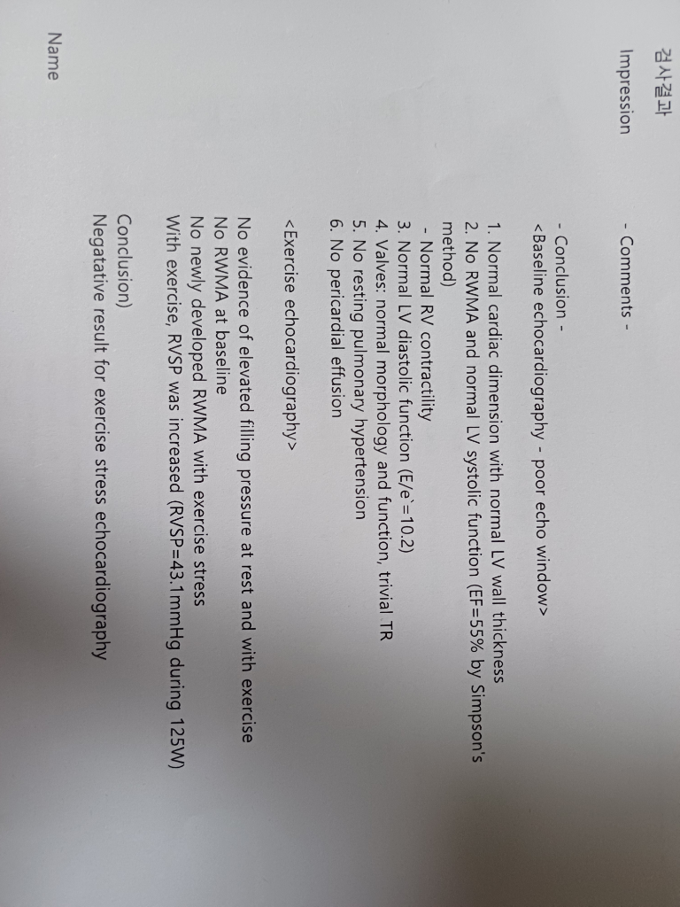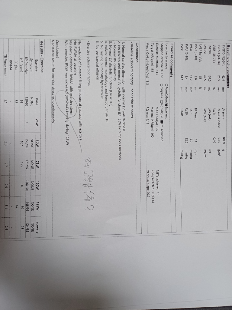 운동부하 심초음파 결과지 판독 부탁드립니다(미세혈관 협심증, 승모판막 환자).