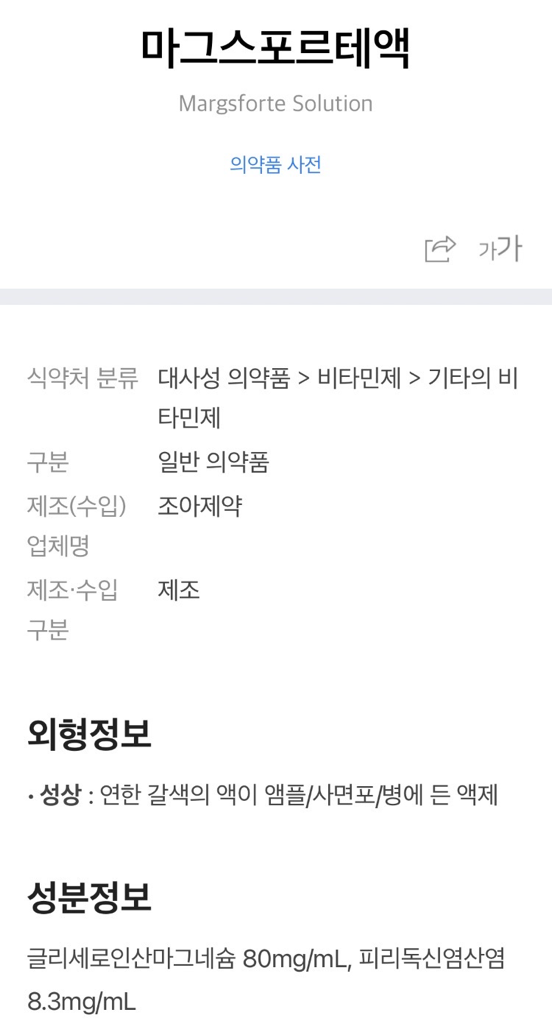첫 번째 처방 봉투와 두 번째는 마그스포르테액이라는 근육 완화를 위한 액상 마그네슘입니다