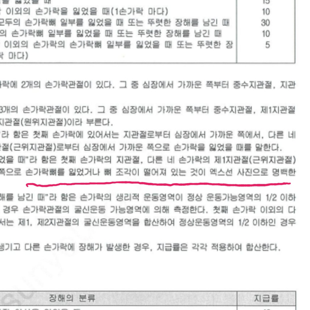 손가락 뼈가 엑스레이 사진 상 명백하게 유리골편이 있는 경우 산재에서도 14급 동통 장해가 아닌 13급 엄지 손가락 뼈의 일부를