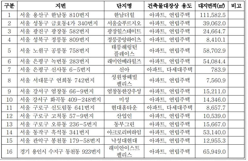단, '붙임2' 표에 나열된 지번이 표기된 주택에 한함. 이라고 적혀있는 것을 볼 수 있습니다.