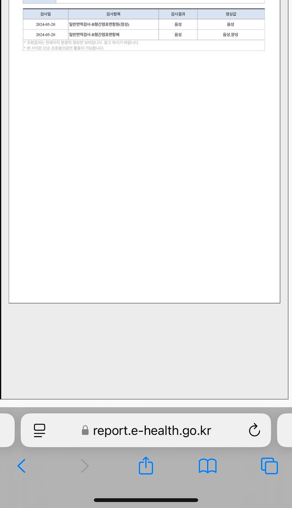 이번에 비형 간염 삼차까지 다 맞고 혈액 검사 했는데요
