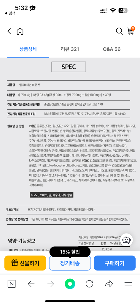 이뮨샷도 멀티비타민에 속하기 때문에