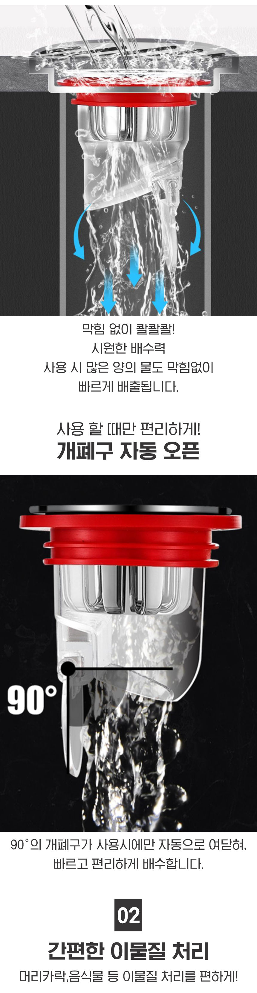 배수가 훨더 빠르고 고이는 형식이 없어지면서 물은 물대로 빠지고 막힌 윗단엔 이물질이나 사용하지 않아도 막는게 유지가 됩니다 거기다 비용도 싸게 구매가 되요